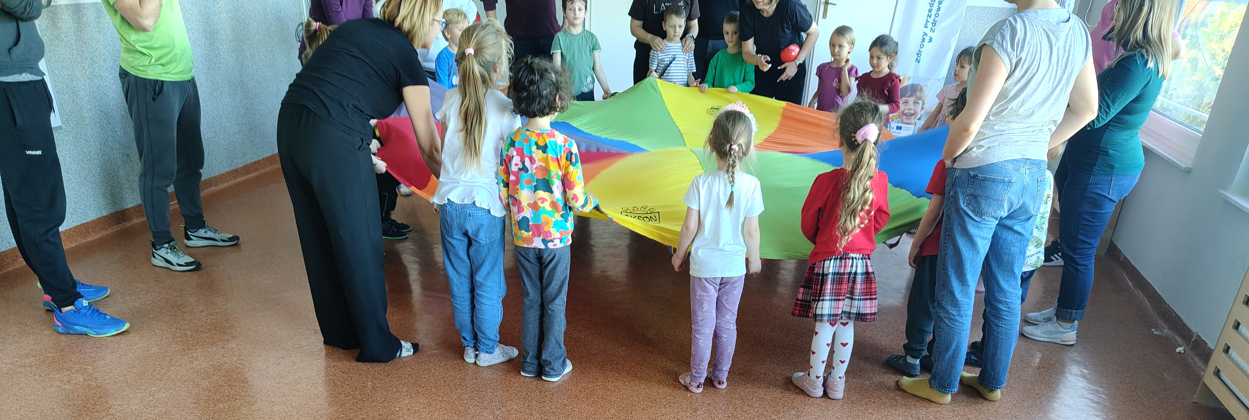 W czasie zajęć wykorzystano między innymi chustę animacyją, piłki, tor przeszkód, oraz obręcze. Były biegi, rzuty do celu, zawody oraz rywalizacja drużyn.